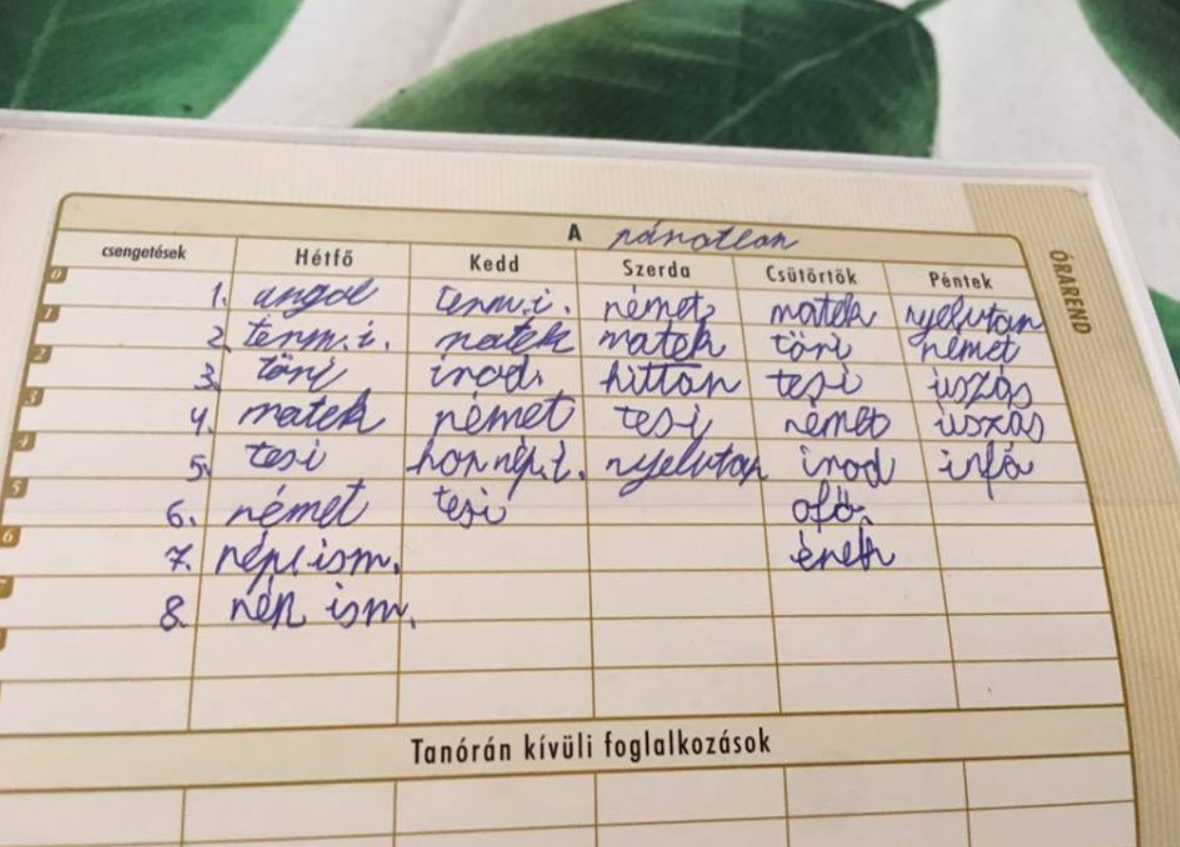 Egy édesanya a 4. osztályos gyermeke órarendjét mutatta meg